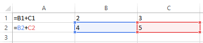 Dacă în celula A1 scriem formula =B1+C1, atunci cand copiem formula în celula A2 formula devine =B2+C2,